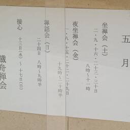 The May Friday evening zazen and Saturday zazen meetings will be held on the following dates. Sunday Zazen Talk will be held on Sunday the 26th. Please feel free to join us. We look forward to seeing you there.